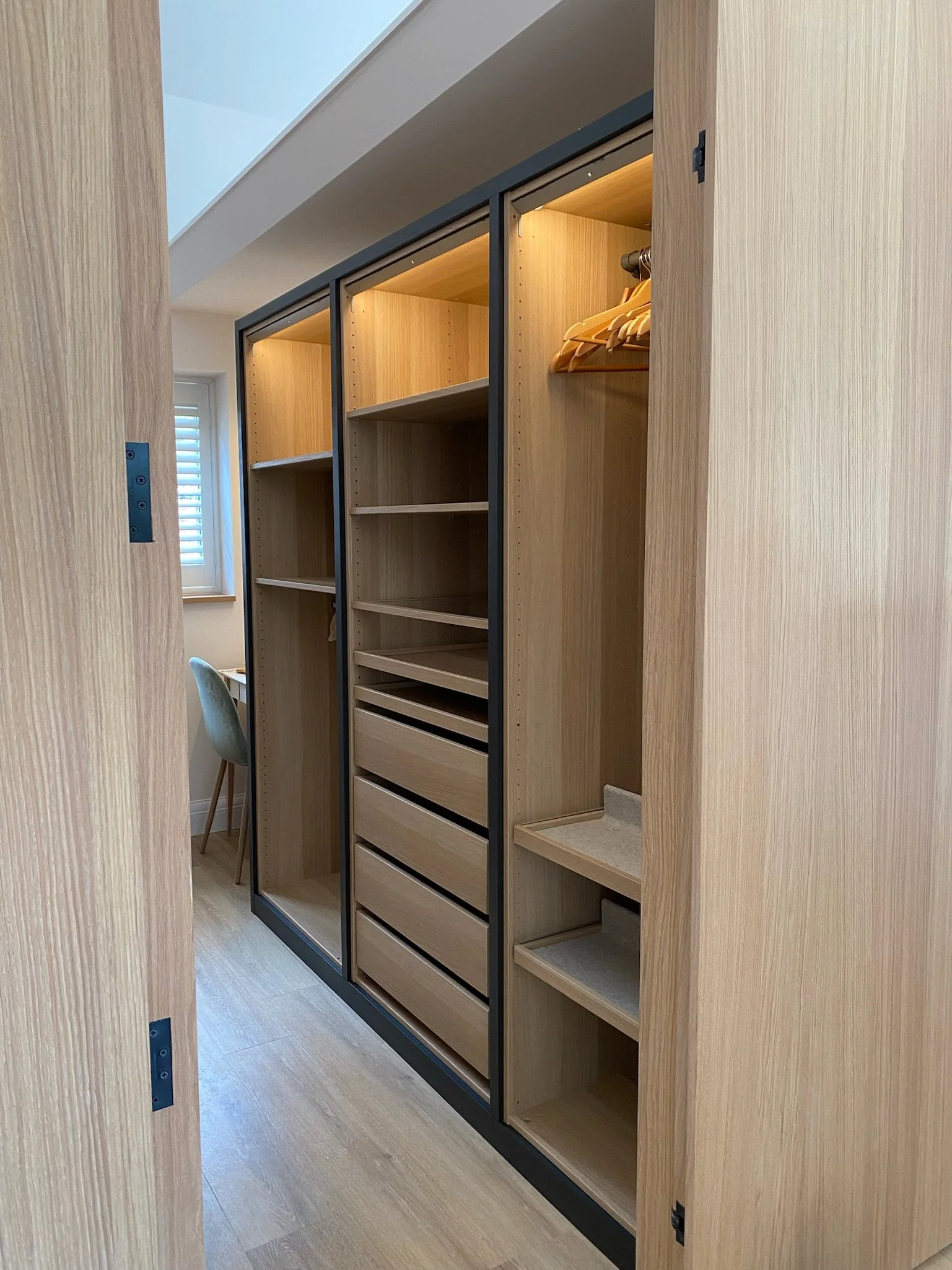 3. Custom built-in wardrobe build with integrated lighting